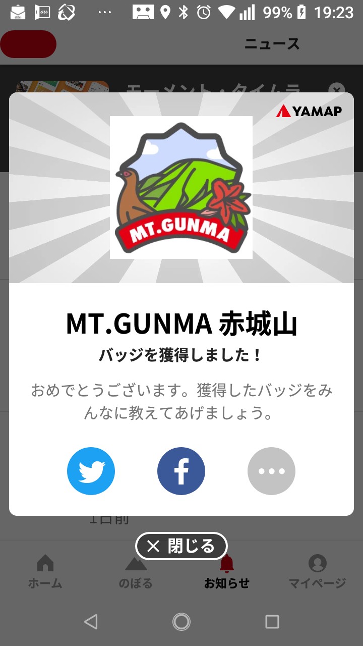 Mt Gunma リアルバッジをもらい ちんさんさんのモーメント Yamap ヤマップ