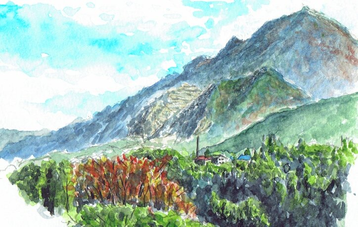 武甲山 p9 水彩 Kemyのスケッチ帳