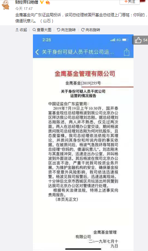 金鹰基金向证监局投诉 总经理被国开基金总经理辱骂 新浪财经 新浪网
