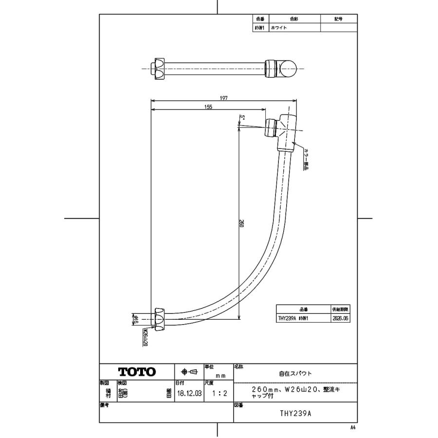 Thy239a Nw1 Toto 自在スパウト 260mm W26山20 整流キャップ付 ホワイト Yag Thy239a Nw1 アールホームマート Yahoo 店 通販 Yahoo ショッピング