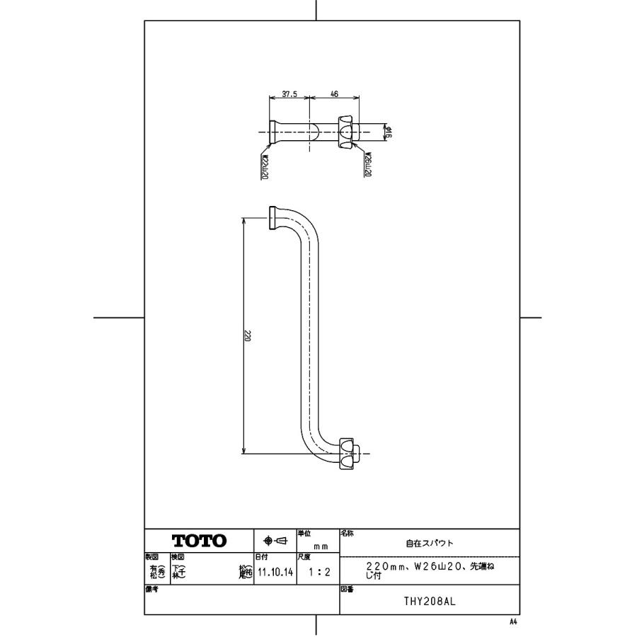 Thy208al Kjk Toto 自在スパウト 220mm W26山20 先端ねじ付 Wg0 Thy208al Kjk 通販 Yahoo ショッピング